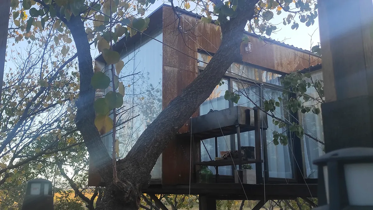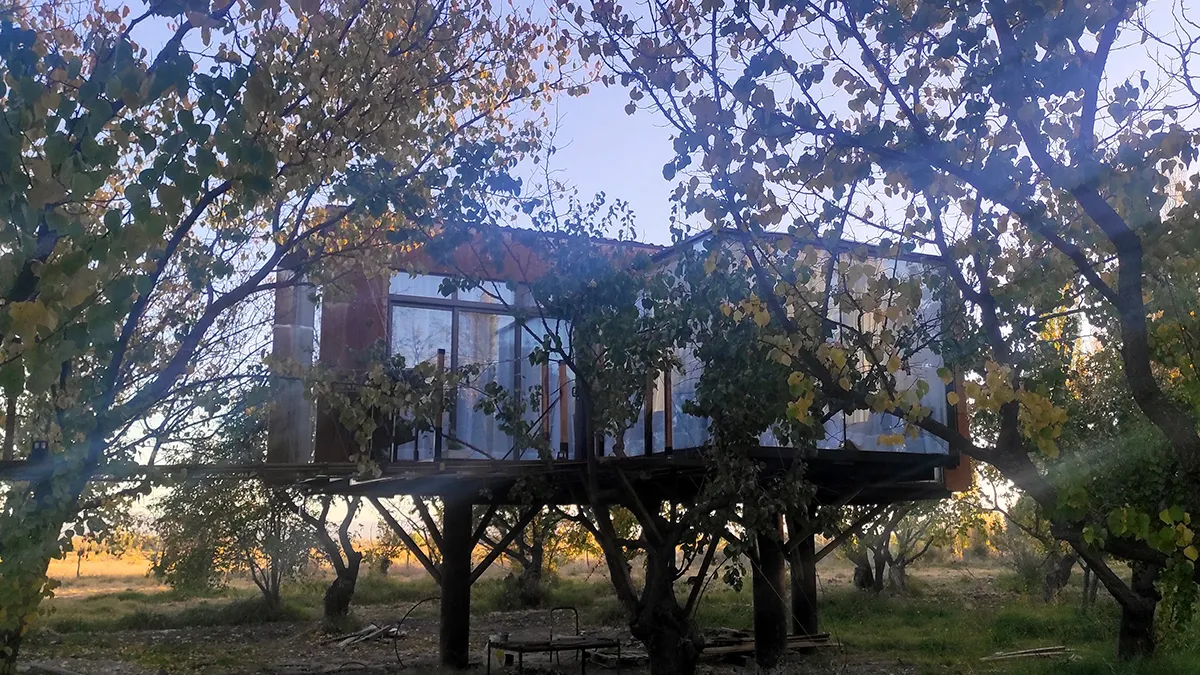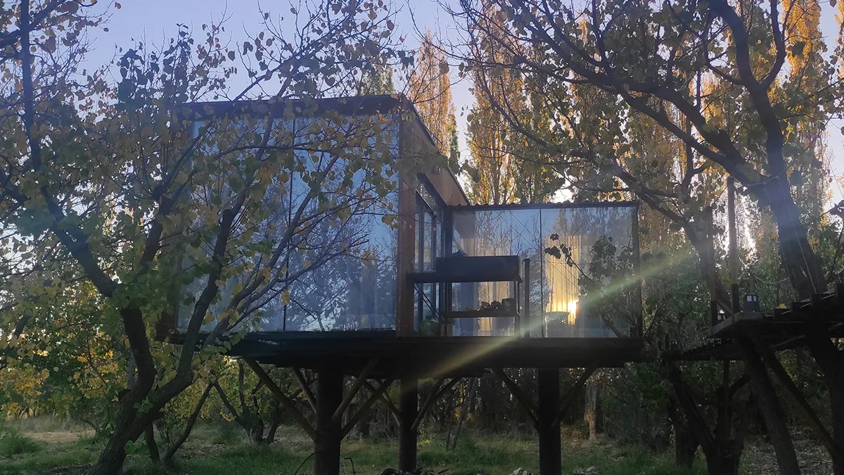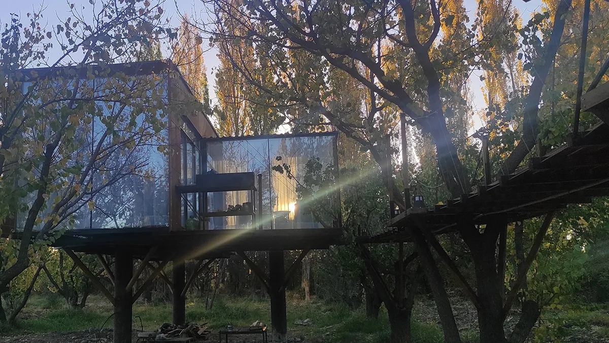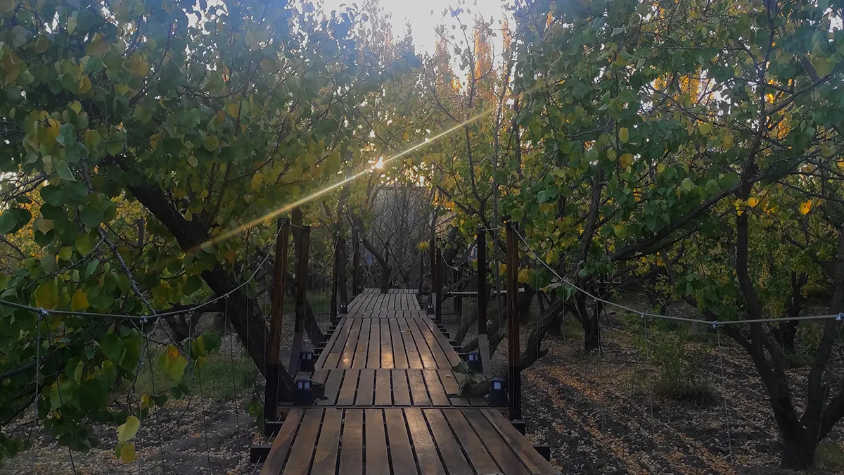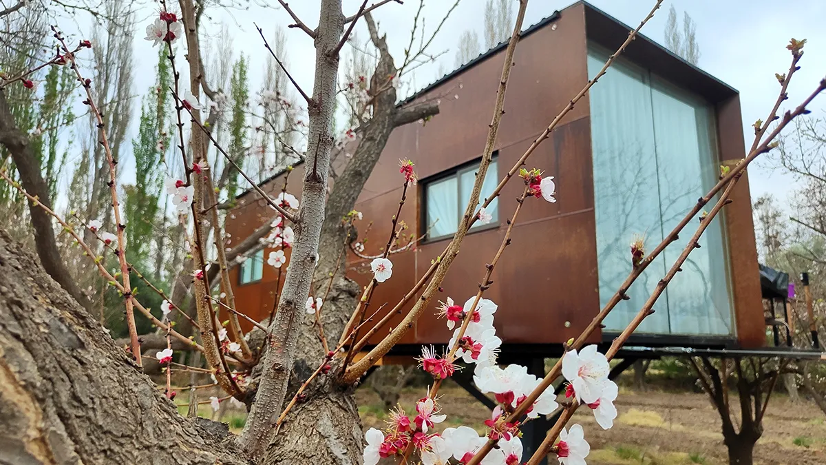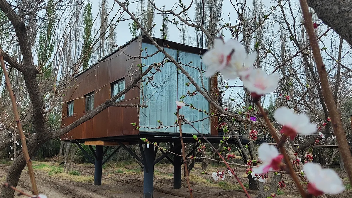 Junto al parque de la Posada Alcornoque, en un bosque de damascos, se encuentra la cabaña Hanami con su literal significado: contemplar a las flores, proveniente de la tradición japonesa que celebra la floración de los damascos.